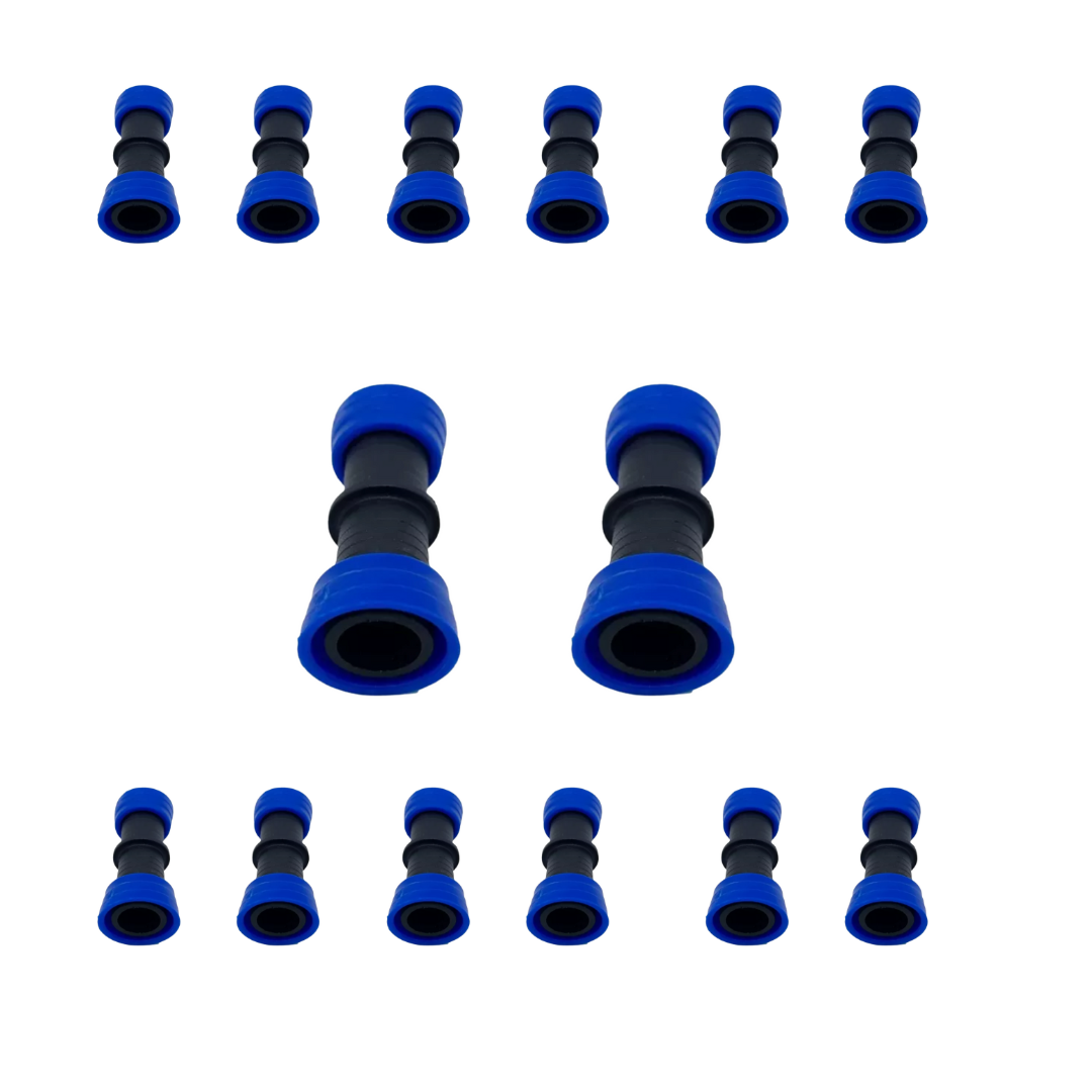 – Conector União 16mm com anel liso azul para fita gotejadora.