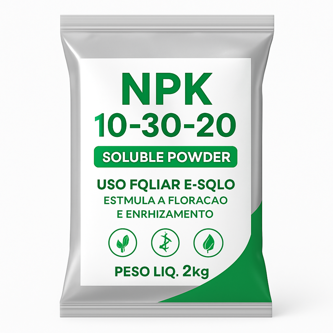 O Adubo NPK 10-30-20 em pó solúvel é indicado para aplicação foliar e via solo, proporcionando nutrição equilibrada e eficiente para diversas culturas. Sua formulação com alto teor de fósforo favorece o enraizamento, a floração e o enchimento de grãos, contribuindo para o desenvolvimento saudável das plantas.