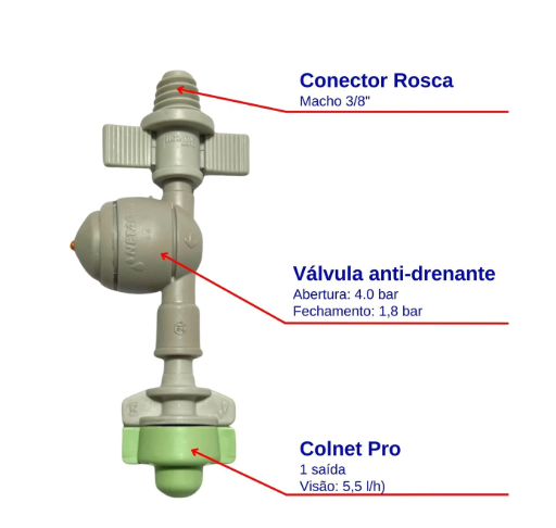 Nebulizador Estático CoolNet Pro - 1 saída 5,5 l/h com válvula antidrenante e Conector Rosca